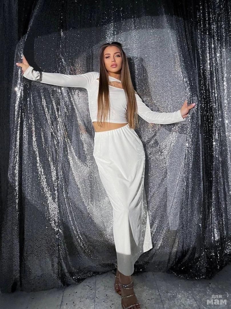 Костюм в исполнении в нежной и однотонной ткани с интересным верхом