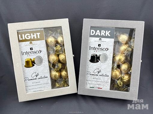 Мини Набор Любителю кофе из Италии в бархатной шкатулке - 10 капсул совместимы некспрессо 50 гр., Ла суисса шок конфеты 90 гр.