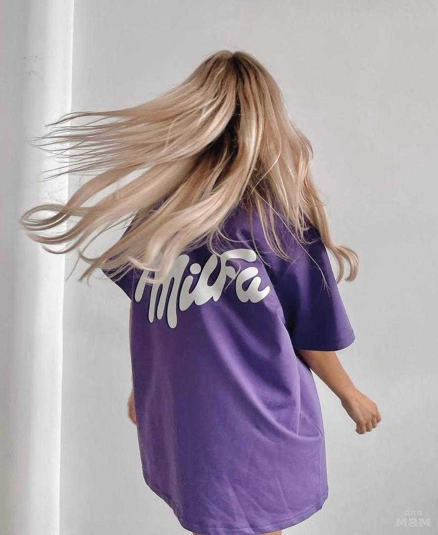 Трендовая футболка Оверсайс с надписью MILFA💜