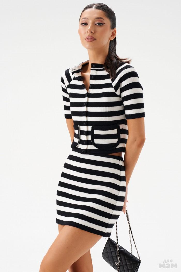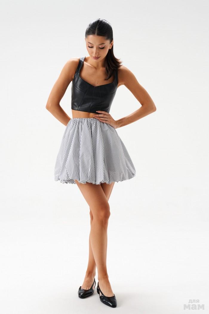 Топ прилегающего силуэта выполнен из фактурного полотна.