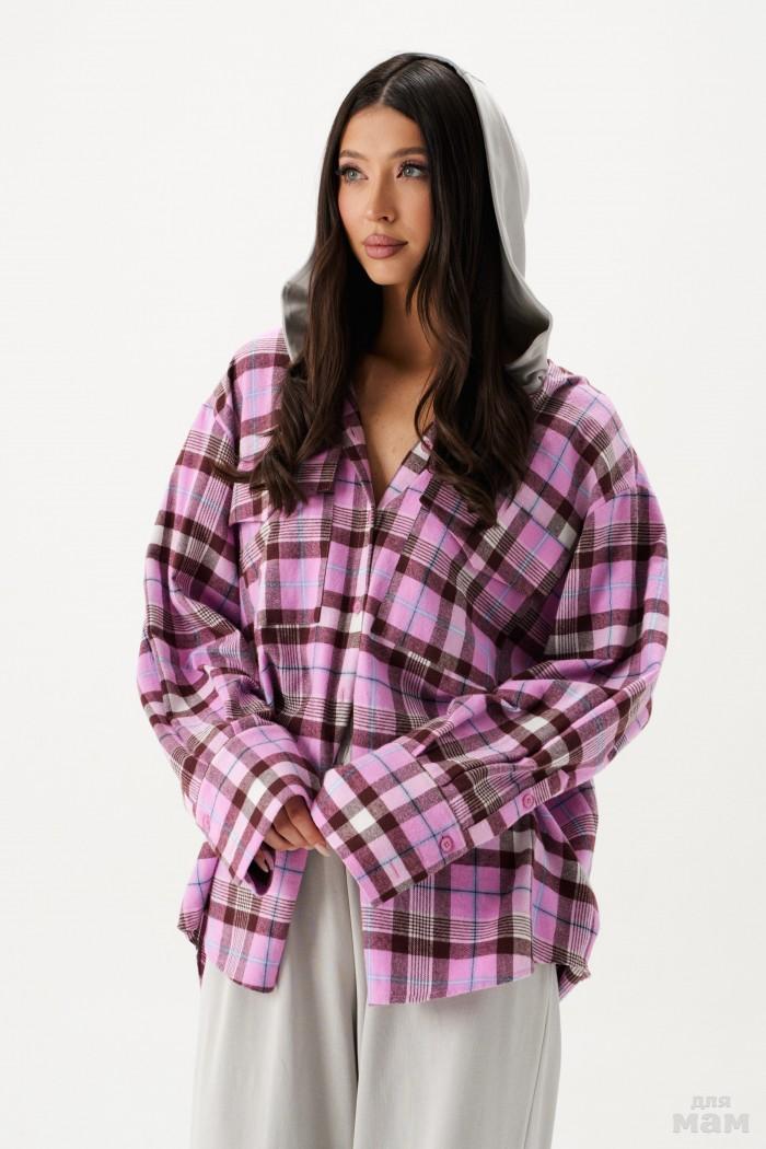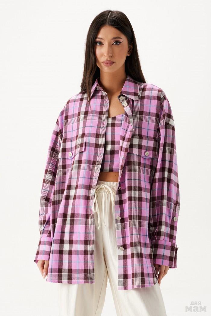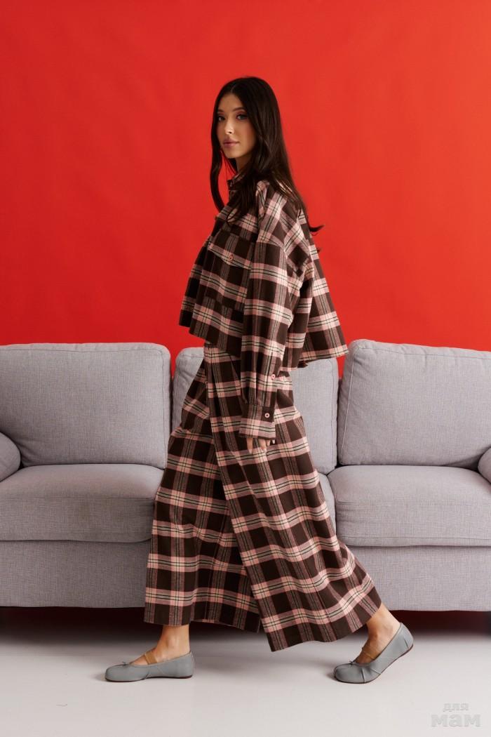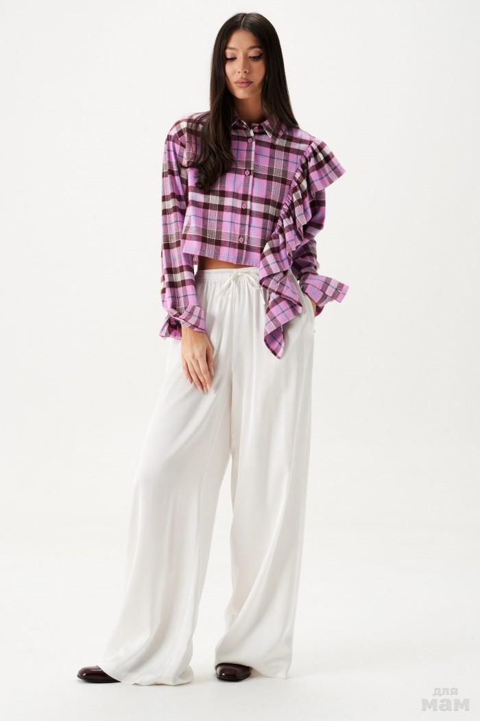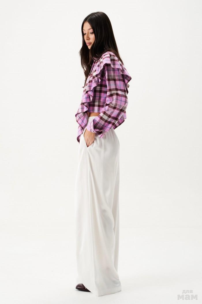 Укороченная рубашка с акцентным воланом выполнен а из полотна с принтом клетка.