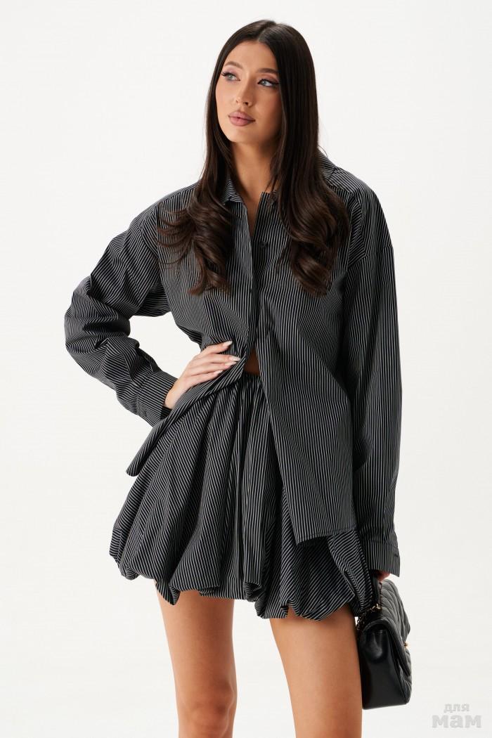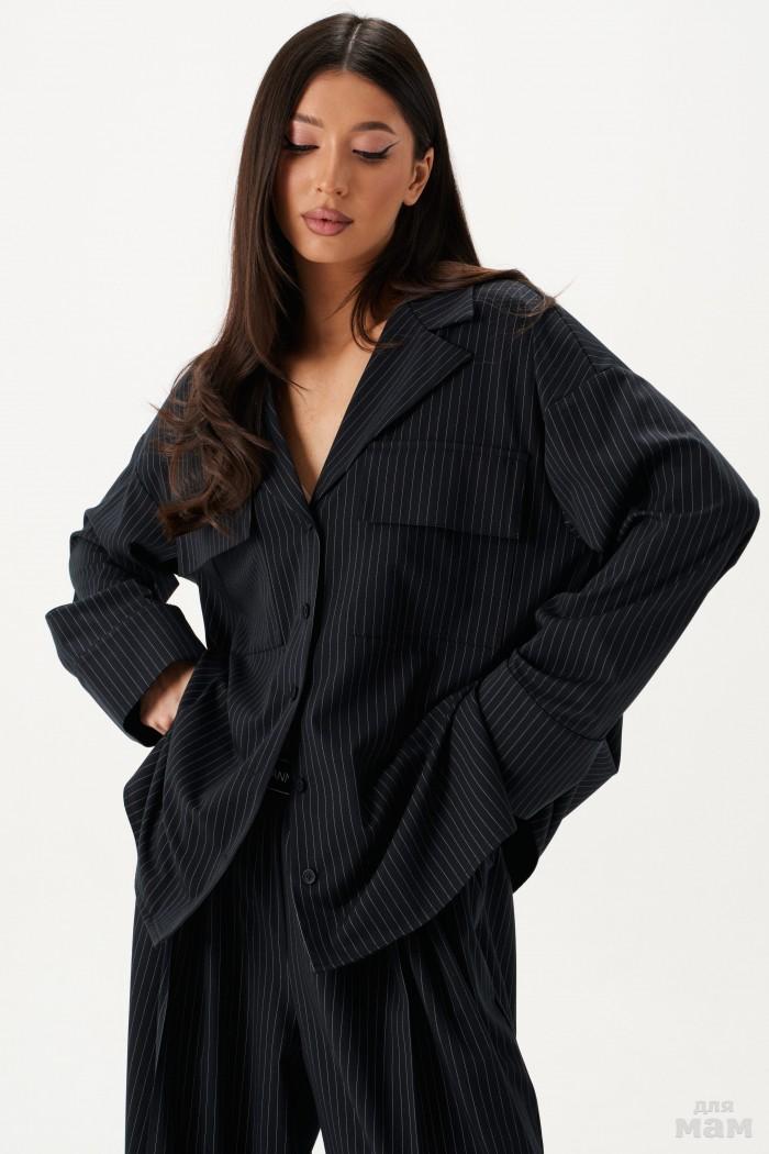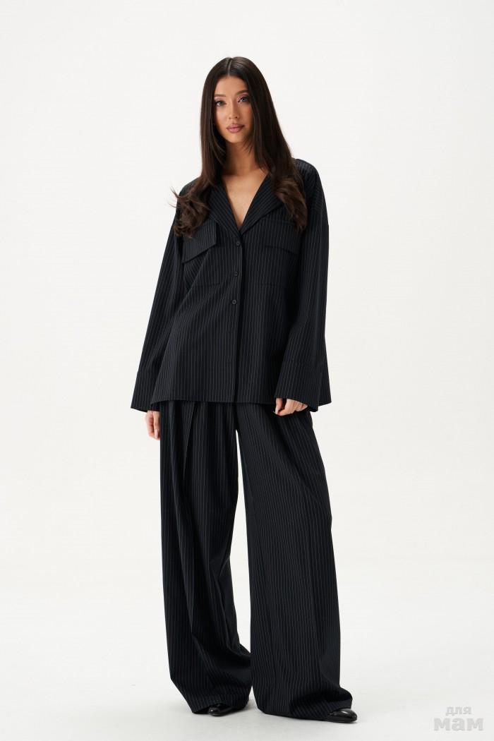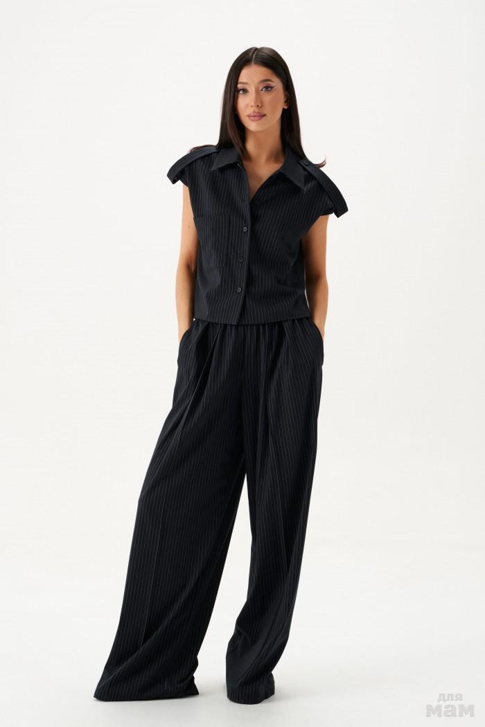 Комплект из рубашки и брюк. Выполнен из хлопкового полотна в тёмно-синем цвете в полоску