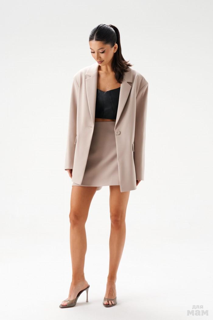 Юбка выполнена из мягкой замшевой ткани молочного цвета (имитация замши). Характеристики: подкладка, пояс стабильный, по передней части рельефы, левый заканчивается разрезом 8 см. Длина 43 см.