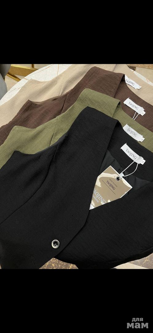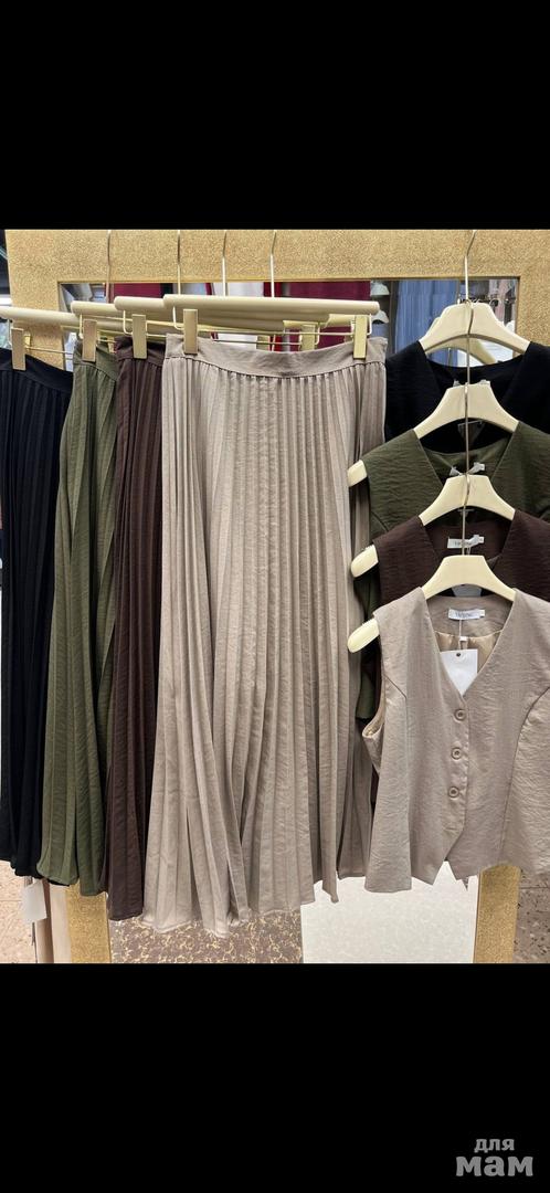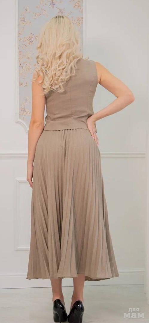 КОСТЮМ С ЖИЛЕТКОЙ, ЮБКА ПЛИССЕ хлопок/лён M L-3100р.