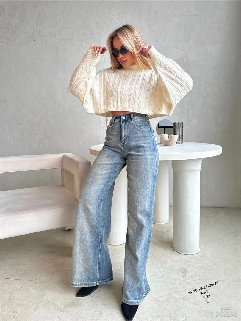 Женские джинсы - палаццо. 2-1-13 8843 15. Качество отличное. Хлопок с добавлением стрейча . Посадка высокая , рост модели 170. ЦЕНА 1500 РУБ