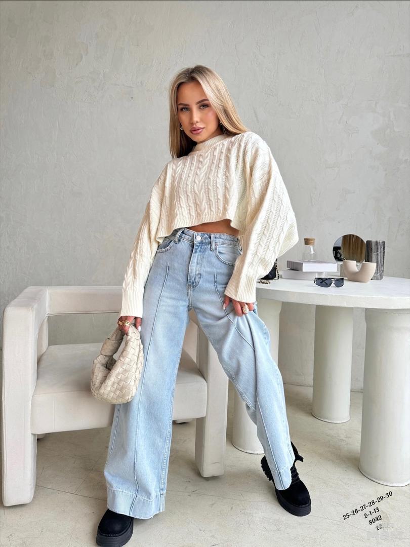 Женские джинсы , палаццо производство Турция . 2-1-13 5174 22. Качество отличное. Хлопок 100% , длина штанины отворачивается. Посадка высокая , рост модели 170. ЦЕНА 2200 РУБ