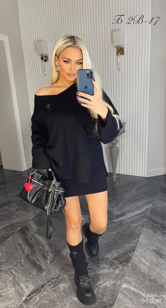 Костюм тройка (кофта, юбка, гетры) Ткань трикотаж машинная вязка, длина юбка 40 см, кофта 68 см, крестики съемные. Рост модели 170см. Фото сделано вживую. Арт 02977. ЦЕНА 2400 РУБ