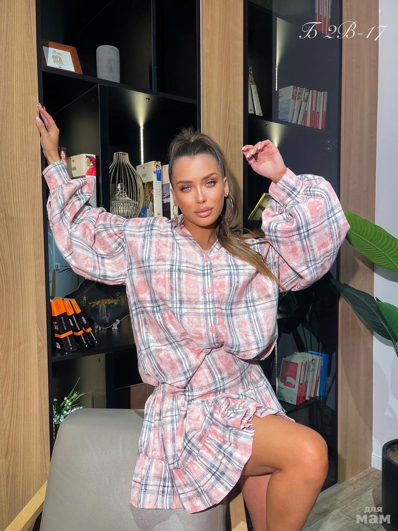 Костюм двойка.Ткань фланель, длина рубашка 72 см, юбка 46 см, рост модели 170 см, фото сделано вживую. Арт 03085. ЦЕНА 1750 РУБ