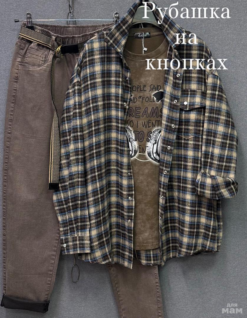РУБАШКА на кнопках. ОВЕРСАЙЗ- Размер единый 42-48