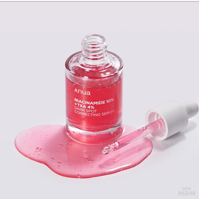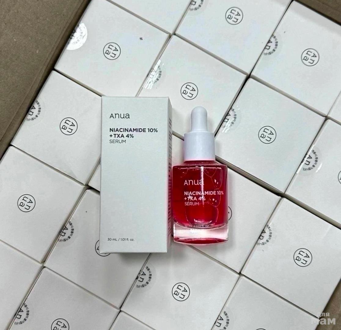 Осветляющая сыворотка с транексамовой кислотой Anua Niacinamide 10% + TXA 4% Serum направлена на коррекцию таких несовершенств, как пигментные и застойные пятна, постакне, тусклый и неоднородный цвет лица, чрезмерная жирность кожи. Содержит ниацинамид, софольянс, витамин С, арбутин и растительные экстракты.