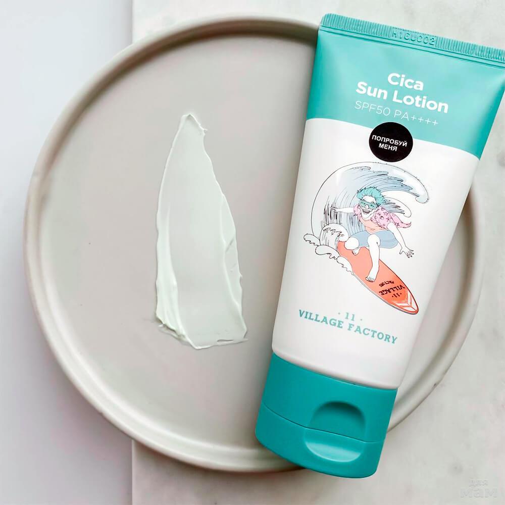 Лёгкий солнцезащитный лосьон с центеллой Cica Sun Lotion SPF 50 PA++++ поглощает ультрафиолетовое излучение, защищая кожу от ожогов, появления пигментации и раннего фотостарения.