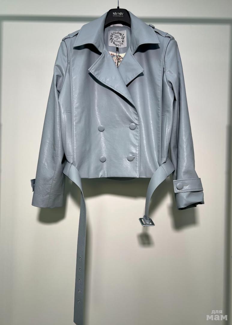 Куртка прямого силуэта, длиной выше линии бедра. Центральная двубортная застежка на 4 петли и пуговицы. На полочке прорезные карманы с листочками. Спинка прямая. Рукав спущеный , длинный, двухшовный. По низу рукава декоративная пата. По линии плеча декоративная пата. Воротник – рубашечный ( на стойке). Пояс в комплекте.