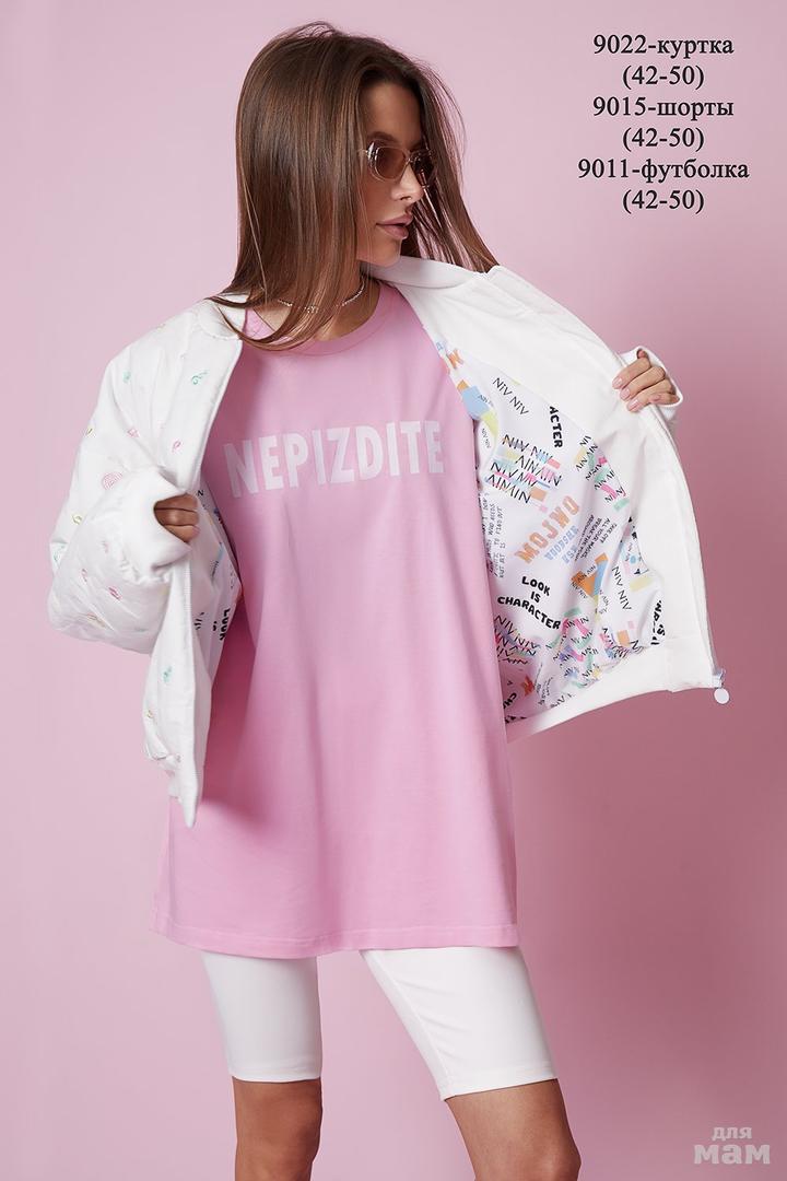 Футболка оверсайз выполнена из плотного хлопкового трикотажного полотна (интерлок). Спущенная линия плеча. Короткий рукав. Горловина круглая с притачной планкой. Дизайнерский принт “NEPIZDITE” (выполнен молочным флоком) на передней половинке футболки.