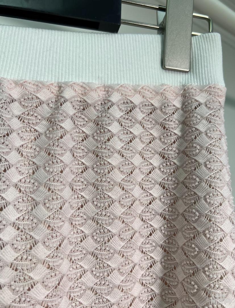 Стильный костюм, состоящий из юбки и джемпера, выполнен из тонкого кружевного вискозного полотна.