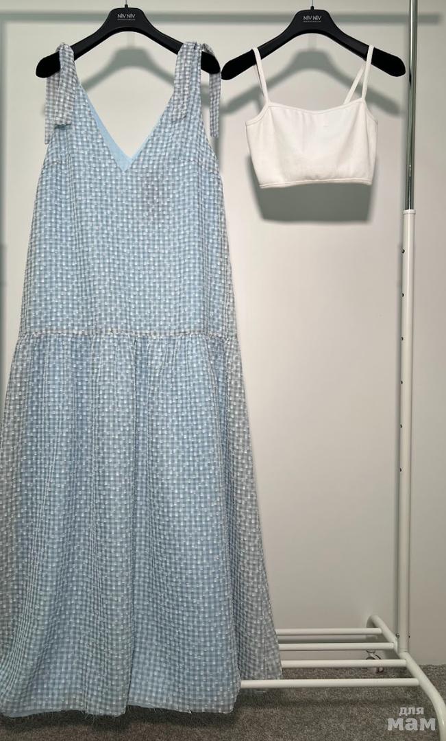 Стильное платье из хлопка. Длина maxi. Свободное в талии и бедрах, в духе минимализма. Изделие без застежки. V-образный вырез горловины и спинки. Регулируемые бретели.