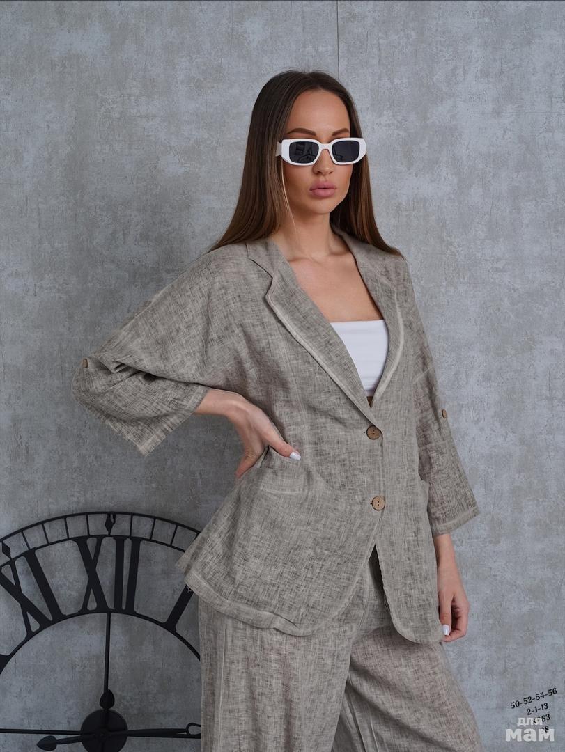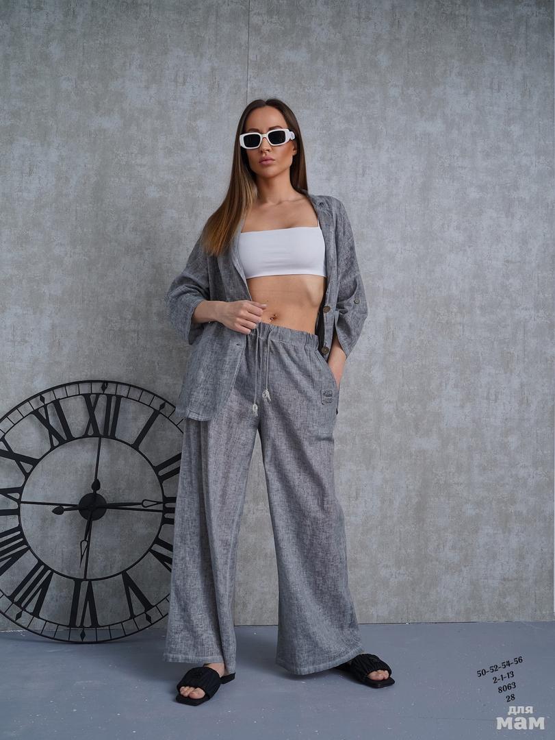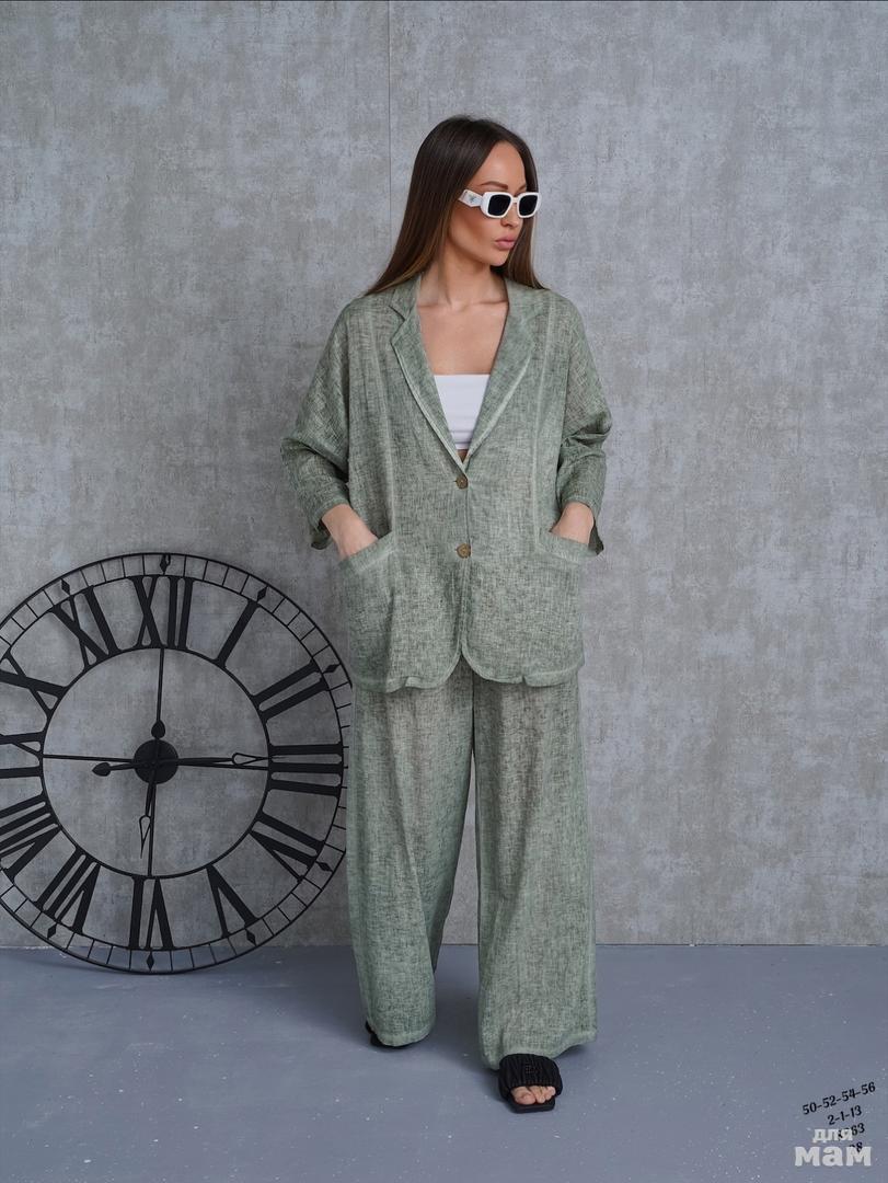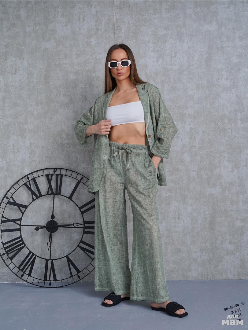 Женский костюм- двойка. Качество отличное . 2-1-13 8063 28. Материал хлопок 100%, из льна. Посадка высокая , рост модели 170 . ЦЕНА 2800 РУБ