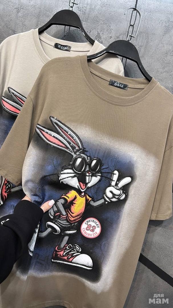 Стильная футболка с ярким принтом - отличный выбор для тех, кто хочет выразить свою индивидуальность. Декор из камешек. Длина изделия 68 см. Полуобхват груди 55 см. Фото сделаны нами в живую. Стиль Оверсайз. ЦЕНА 850 РУБ