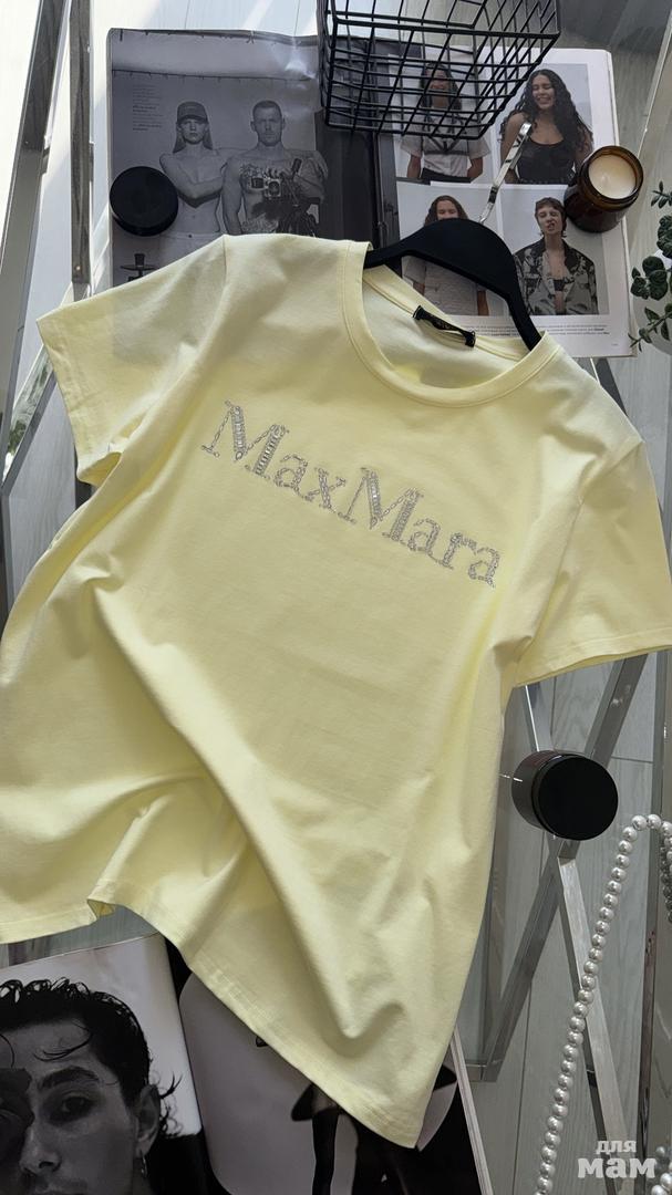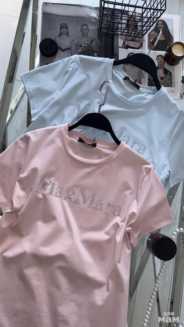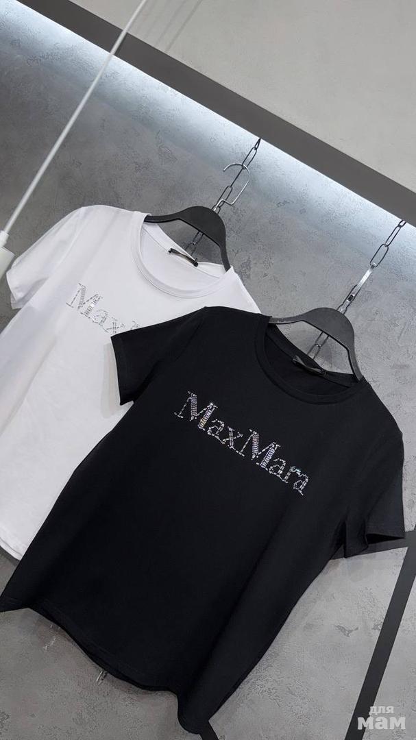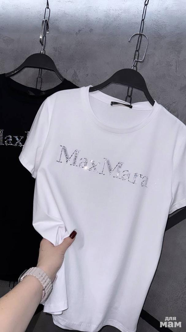 Базовые футболки с лого известного бренда из камешек. Отличное фабричное качество. Материал: хлопок со стрейчем, длина по спинке 63 см. ЦЕНА 850 РУБ