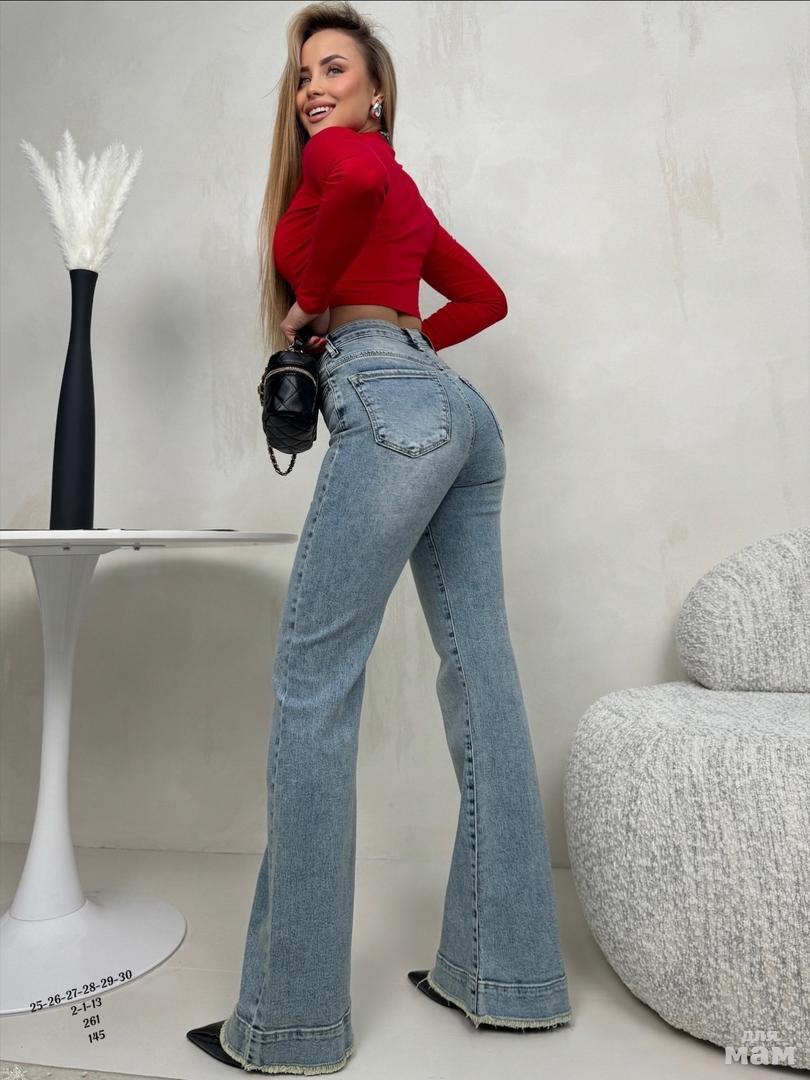 Женские джинсы. 2-1-13 261 145. Клеш от колена . Хлопок с добавлением стрейча. Посадка высокая , рост модели 170. ЦЕНА 1450 РУБ
