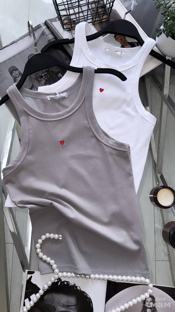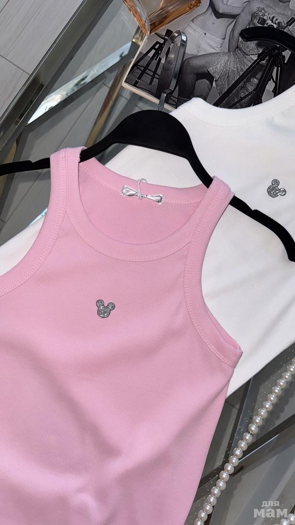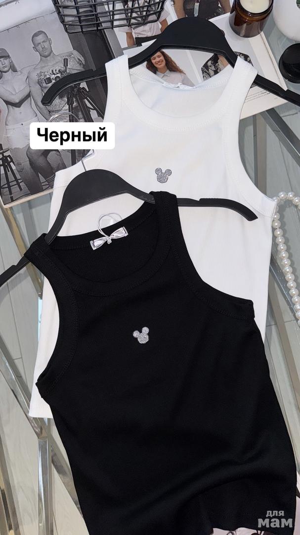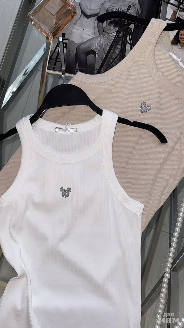 Базовые майки с лаконичным принтом из стразинок - основа любого летнего образа. Отличное фабричное качество. Длина изделия 51см. ЦЕНА 550 РУБ