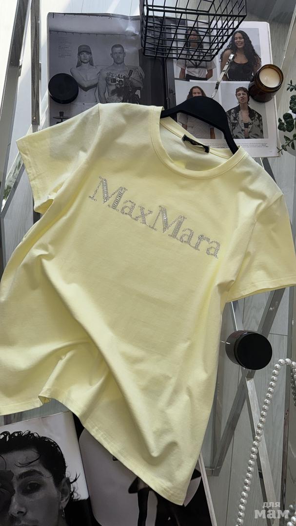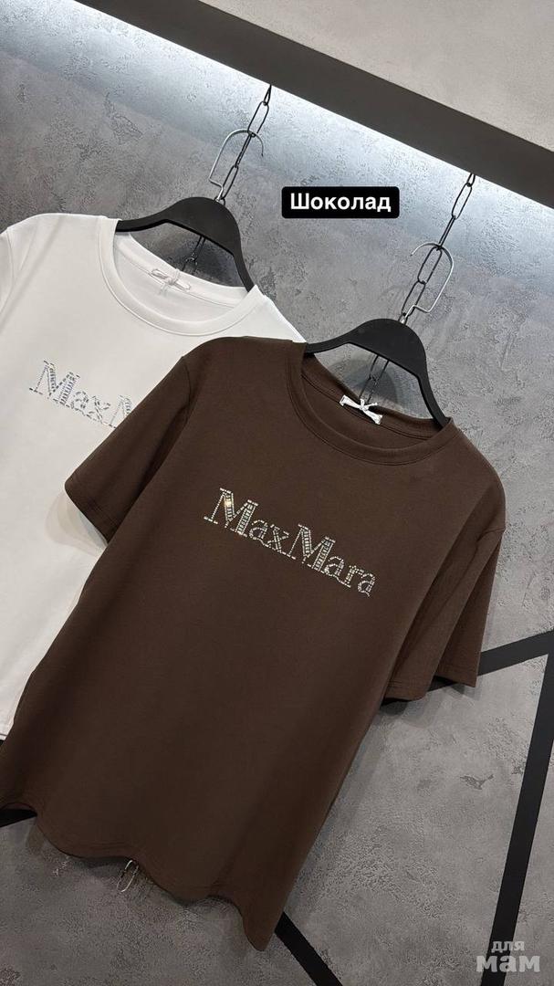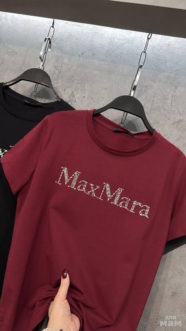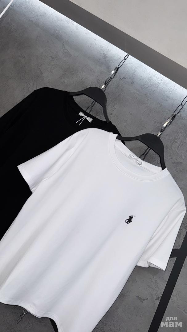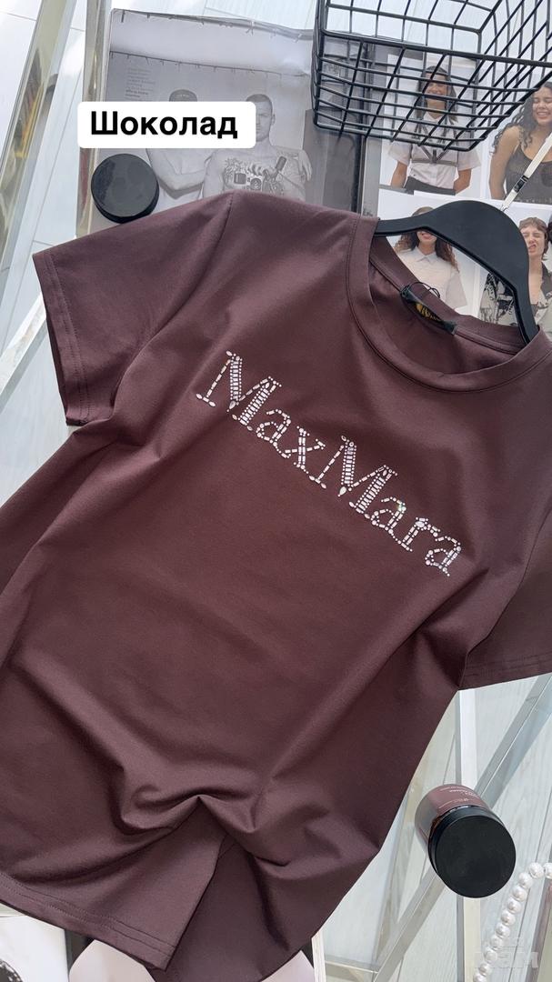 Стильная лаконичная футболка с лого бренда из камешек . Отличное фабричное качество. Материал: хлопок со стрейчем, длина по спинке 61 см. ЦЕНА 850 РУБ