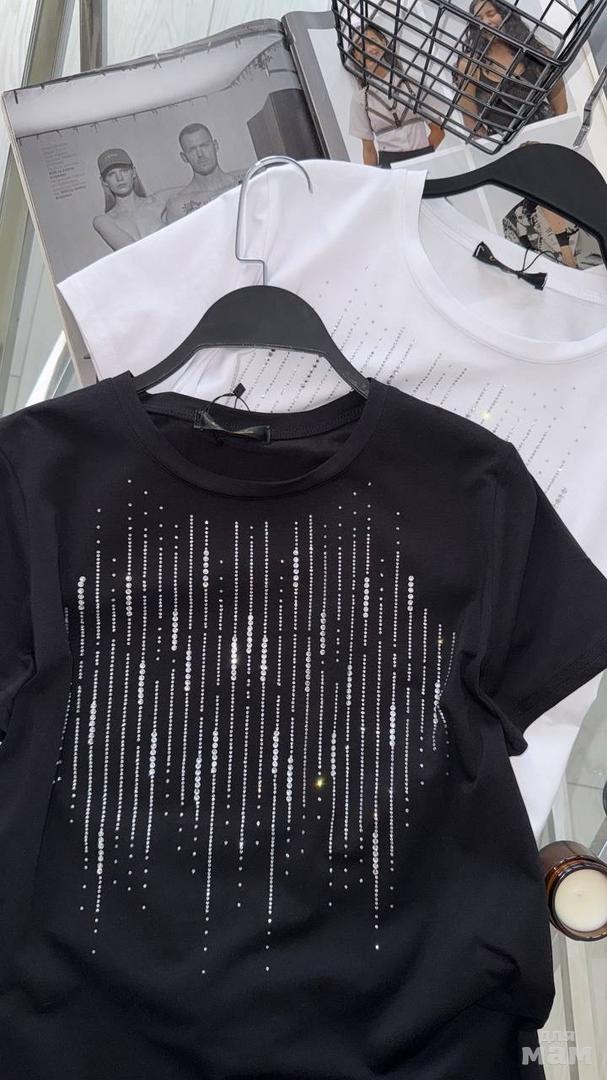 Классные футболки с камешками. Отличное фабричное качество. Материал: хлопок со стрейчем, длина по спинке 62 см. ЦЕНА 700 РУБ