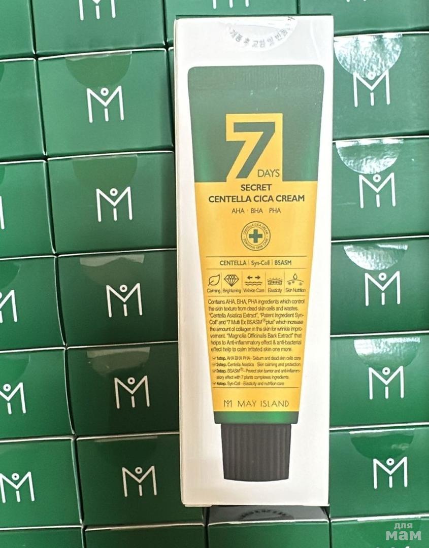 Восстанавливающий крем для проблемной кожиMay Island 7 Days Secret Centella Cica Cream AHA/BHA/PHAс 3-мя видами кислот, экстрактом центеллы азиатской и пептидами.