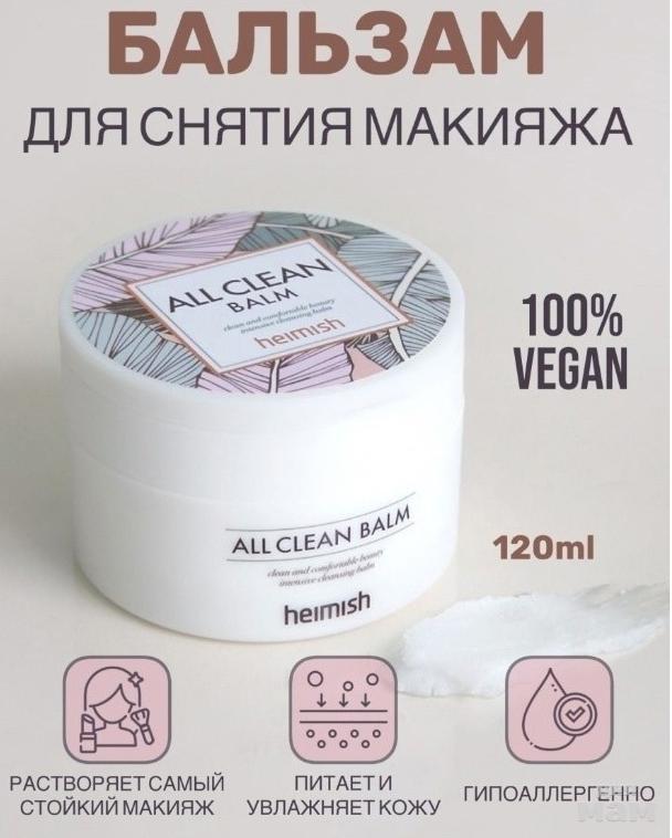 Очищающий бальзам для снятия макияжа с мандарином Heimish All Clean Balm Mandarin глубоко проникает в поры и эффективно удаляет все виды загрязнений, излишки кожного себума, стойкий макияж, солнцезащитные и тональные средства. Растворяет комедоны, помогает избавиться от чёрных точек и нормализует жирность кожи.