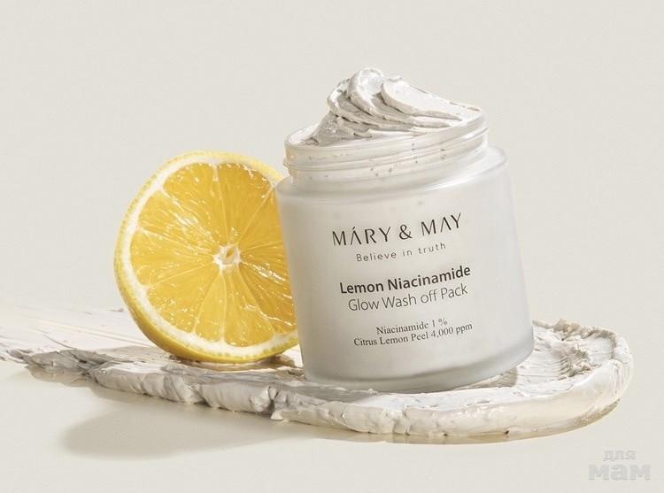 Маска Mary&May Lemon Niacinamide Glow Wash Off Pack очищает, абсорбируя загрязнения из пор, и визуально сужает их, сглаживает рельеф, выравнивает тон и осветляет, не провоцирует стянутости и сухости.