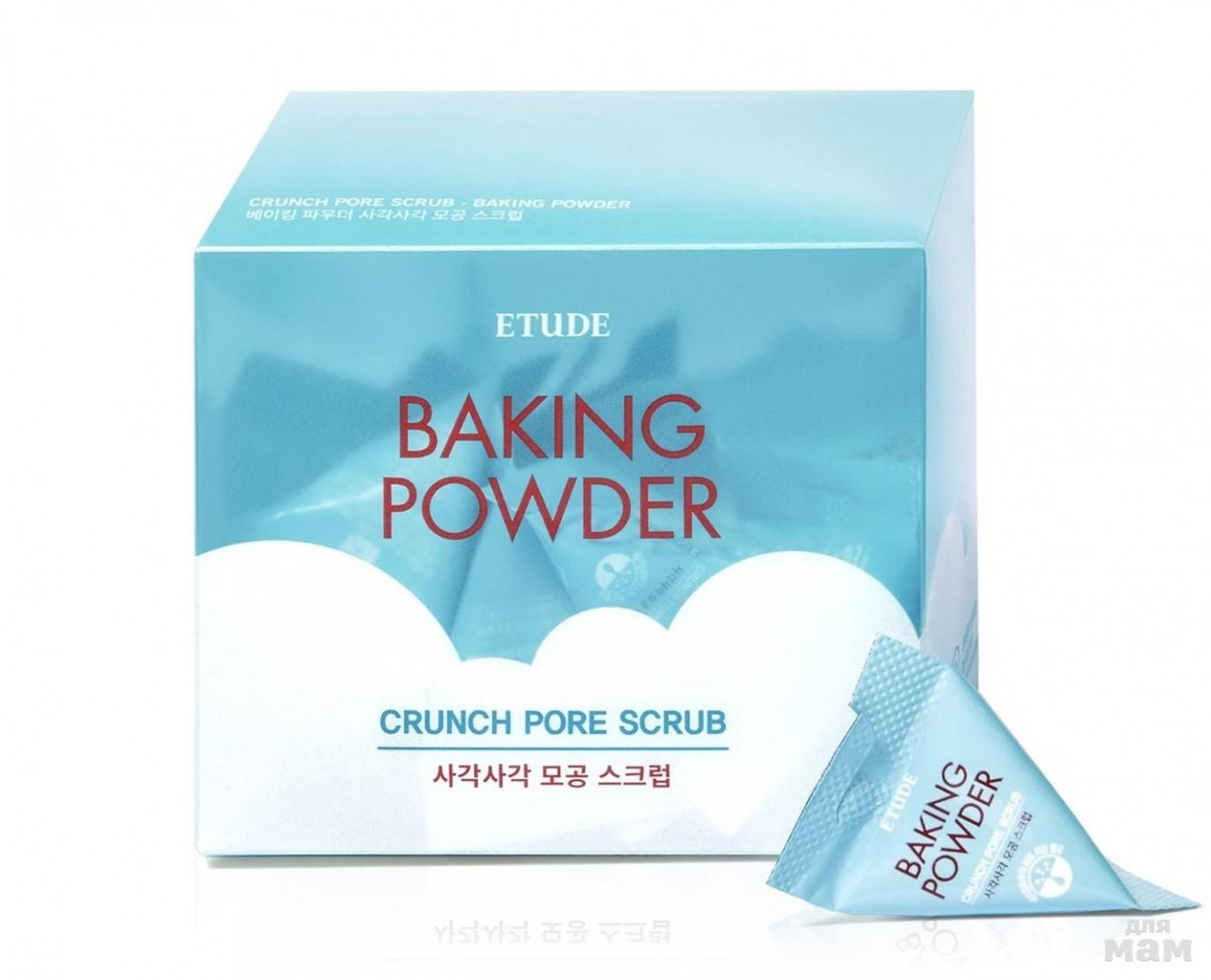Скраб для лица в пирамидкахEtude House Baking Powder Crunch Pore Scrub на 40% состоит из мельчайших крупинок соды и за счет этого эффективно очищает поры от загрязнений, мягко отшелушивает омертвевшие частички кожи, стимулируя клеточное обновление, обеззараживает и оздоравливает тон лица. И при этом скраб приятно холодит кожу!