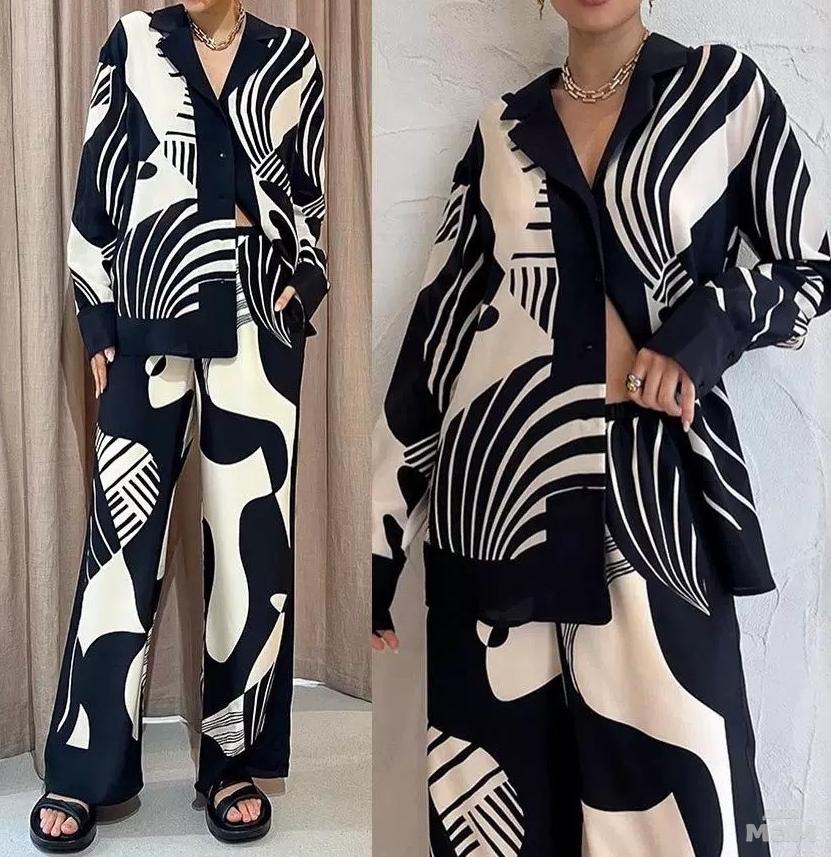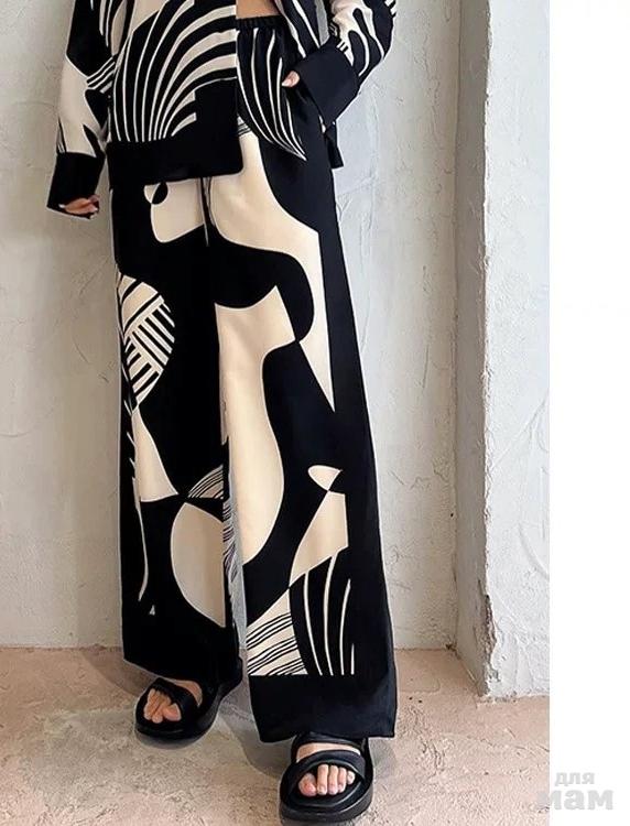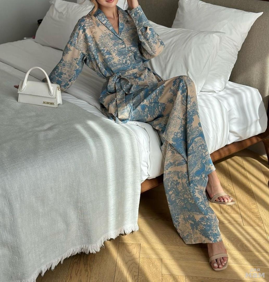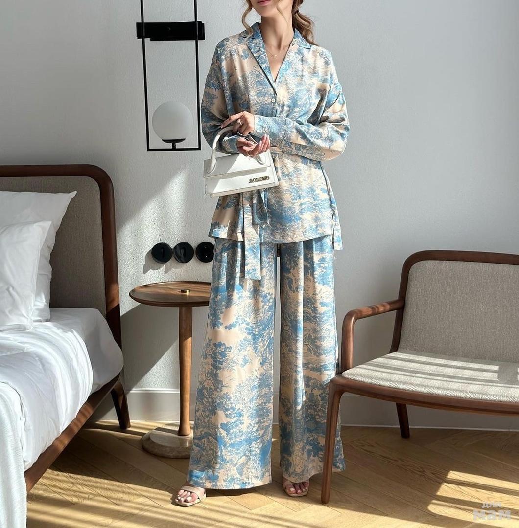 ткань : иск шелк-Широкие брючки на резинке ( 108 см ) и классическая рубашка/пиджачек Рост модели 170 см размер S 2900р