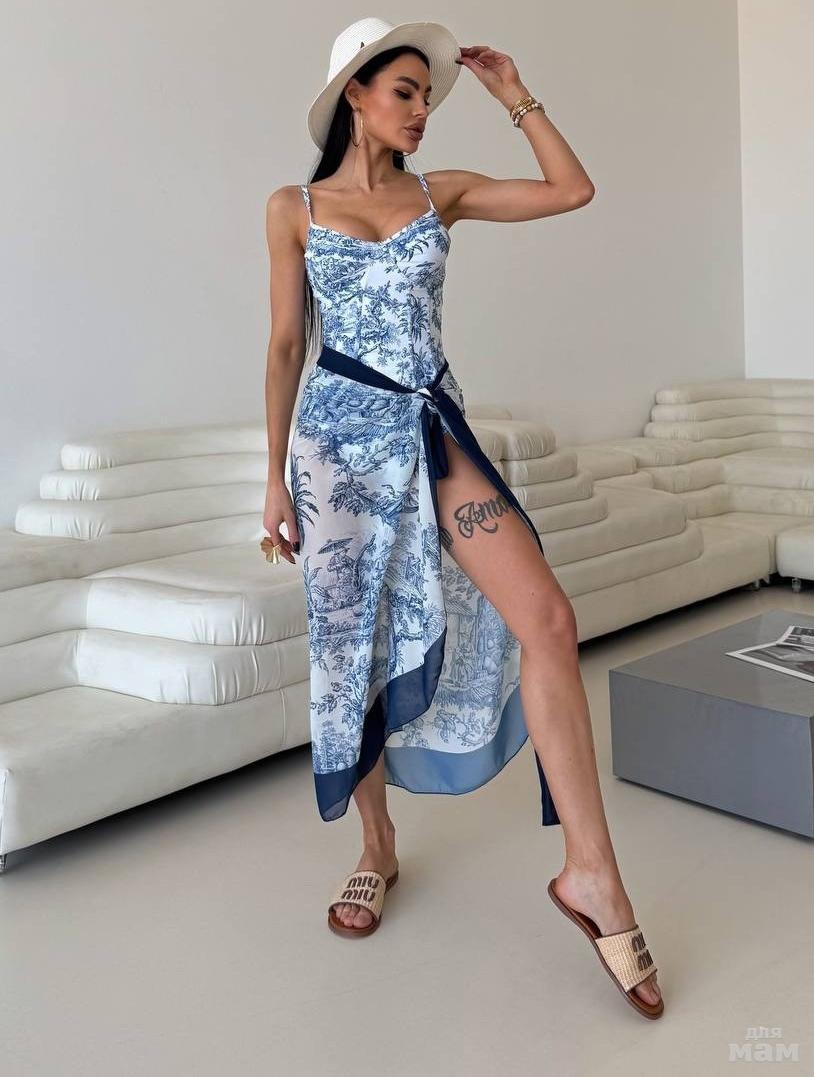 слитный купальник -идеальная посадка -лиф с чашечками -Красивый платок - парео в комплекте Быстросохнущий и высокоэластичный.