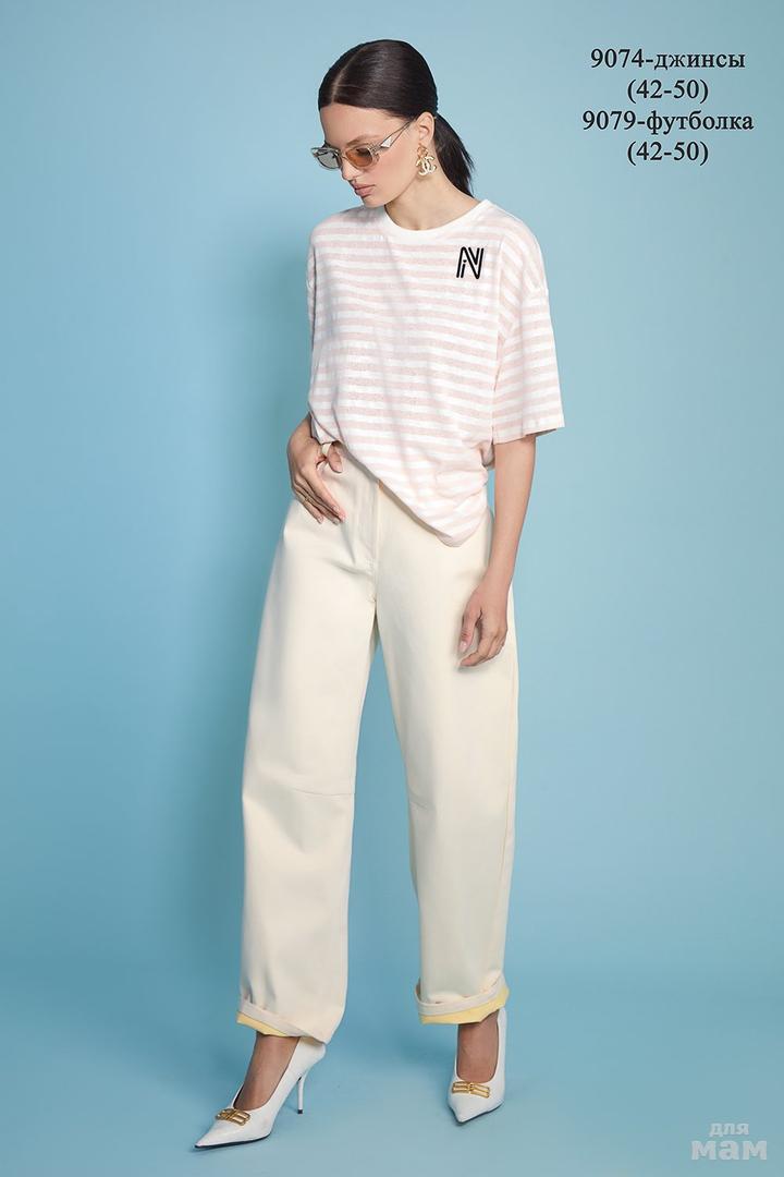 Блуза выполнена из тонкого трикотажного полотна. Изделие полуприлегающего силуэта.. Горловина круглая. На полочке дизайнерский принт”NN”