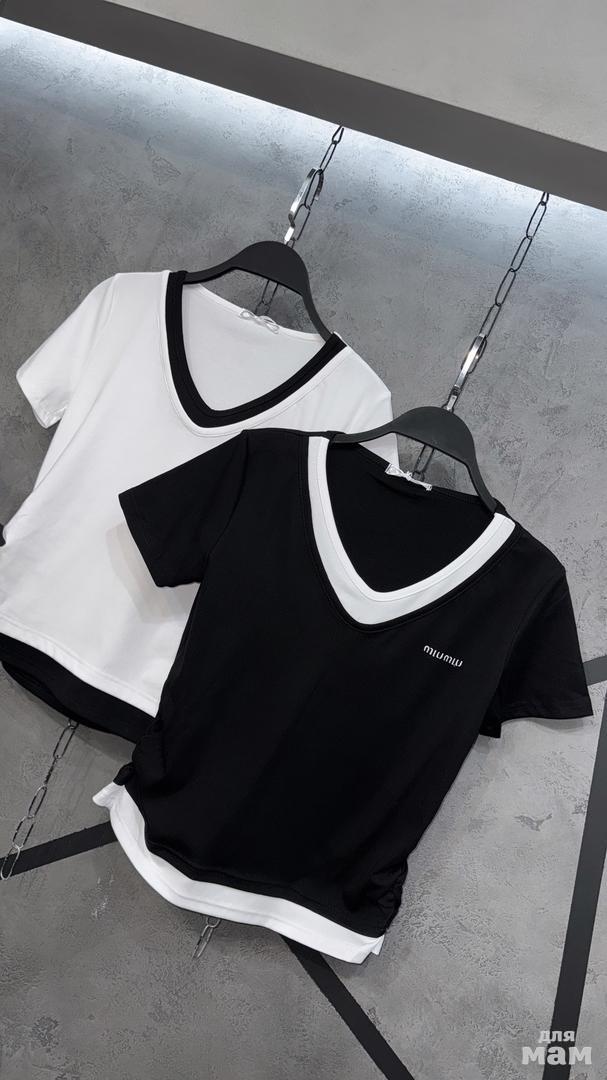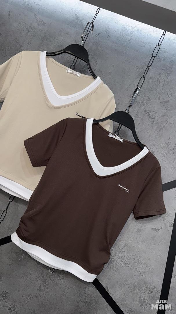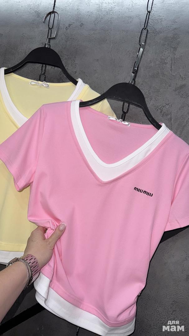 Футболочка с v-образным вырезом. Длина изделия 51 см. Отличное качество. ЦЕНА 800 РУБ