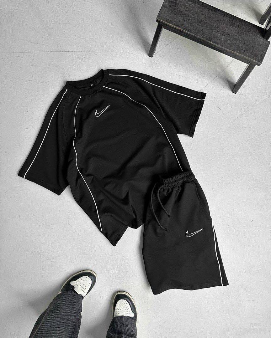 Мужской костюм двойка НадписьВышивка NK футболка +шорты