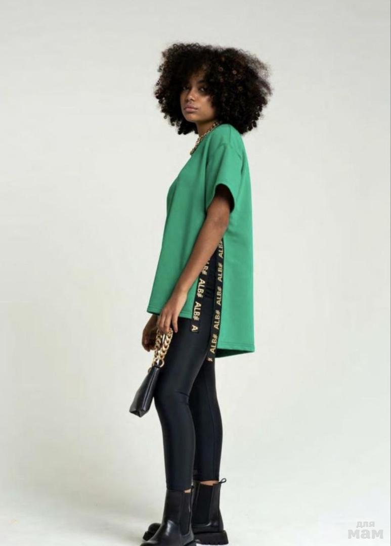 Хитовая футболка с разрезами(плотная двунитка,можно носить отдельно можно с лонгом) в красивом зеленом цвете.Супер хит!!!от итальянского бренда Альберелло.