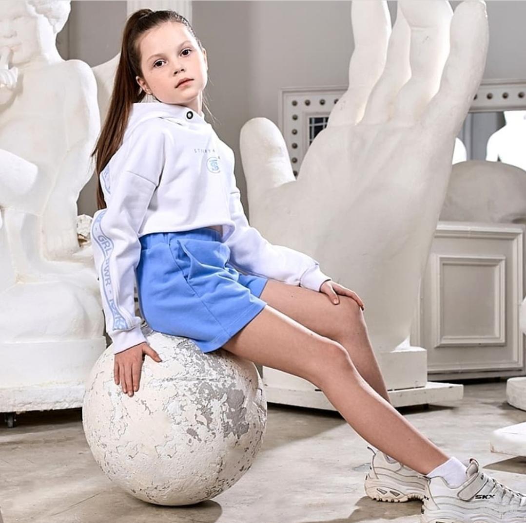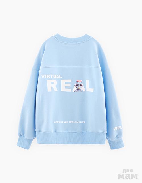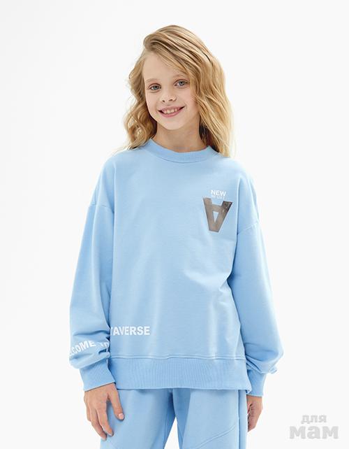 Светло-голубой свитшот для девочки. Модель прямого силуэта, оверсайз. Приспущенная линия плеча. . Свитшот из браш хлопка,невероятно приятный на ощупь.Декорирован дизайнерским принтом. Размеры в наличии 134,146. Цена 1800 руб