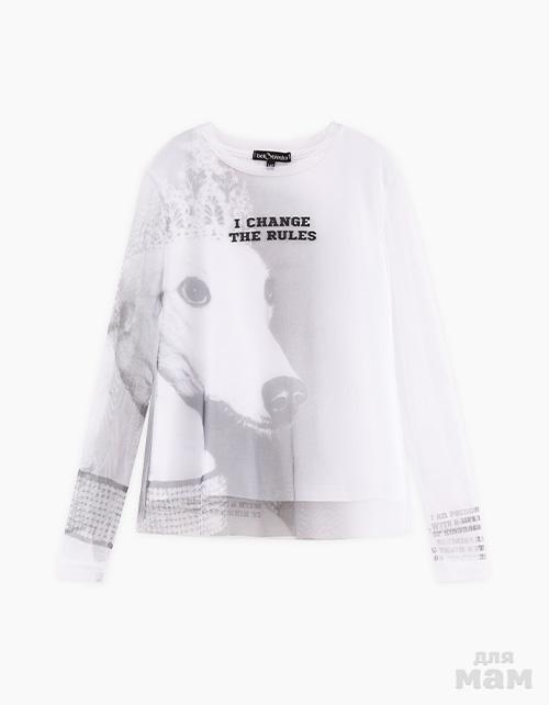 Дизайнерский лонгслив для девочки. Модель прилегающего силуэта. Благодаря печати и сетке-эффект 3 д. Очень стильный. Размеры в наличии 134,140,146,152,158,164.Цена 990 руб