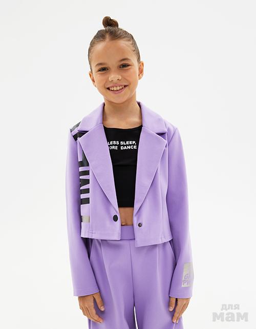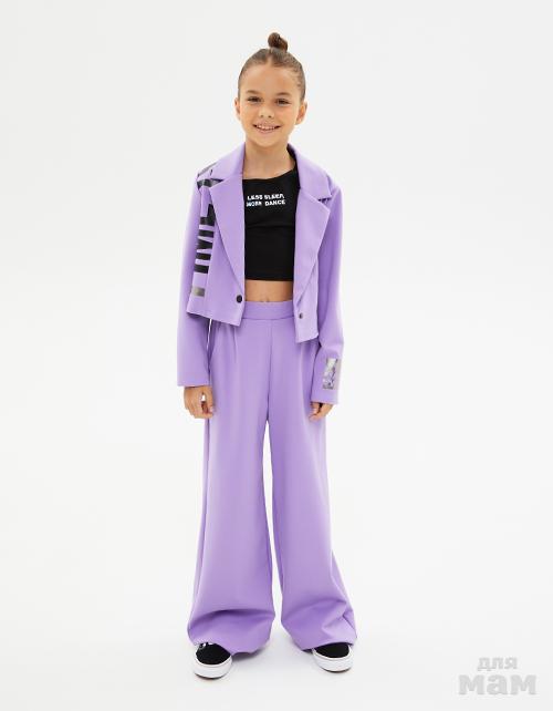 Очень красивый костюм в лавандовом оттенке. На жакете стильный принт. Брюки широкие-палаццо.
