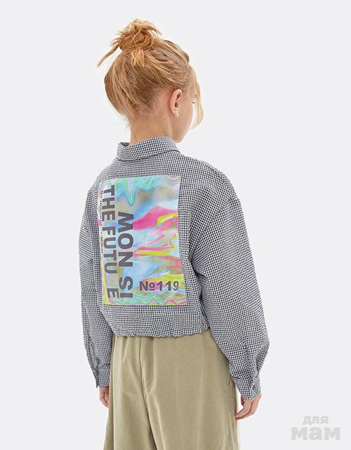 Модная кроп-рубашка в клетку для девочки. Укороченная оверсайз модель. Застёжка на кнопки. Спущенная линия плеча. Стильный принт на спинке.Размеры в наличии 158,164 цена 1350