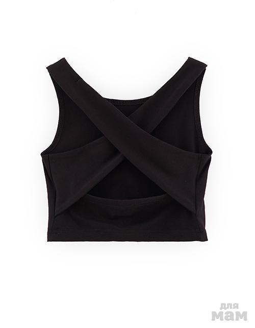 Чёрный кроп-топ для девочки. Модель прилегающего силуэта. Перекрещенные широкие бретели по спинке. Шрифтовой авторский принт. Размер 158-164БРОНЬ .цена 990