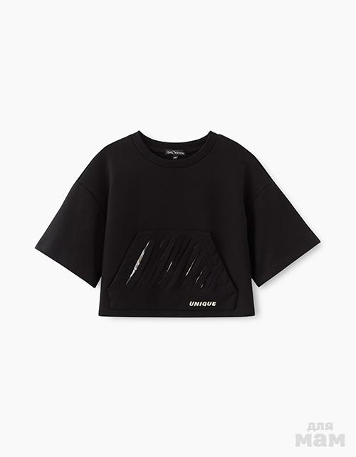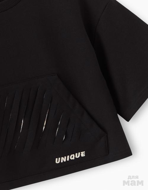 Дизайнерская чёрная футболка для девочки. Модель прямого силуэта. декорирована цифровым авторским принтом. Размеры в наличии 140,146 Цена=800 руб