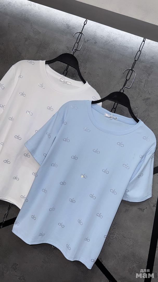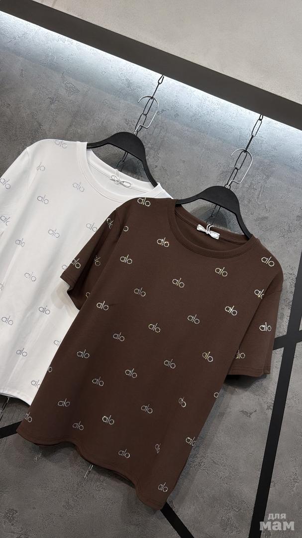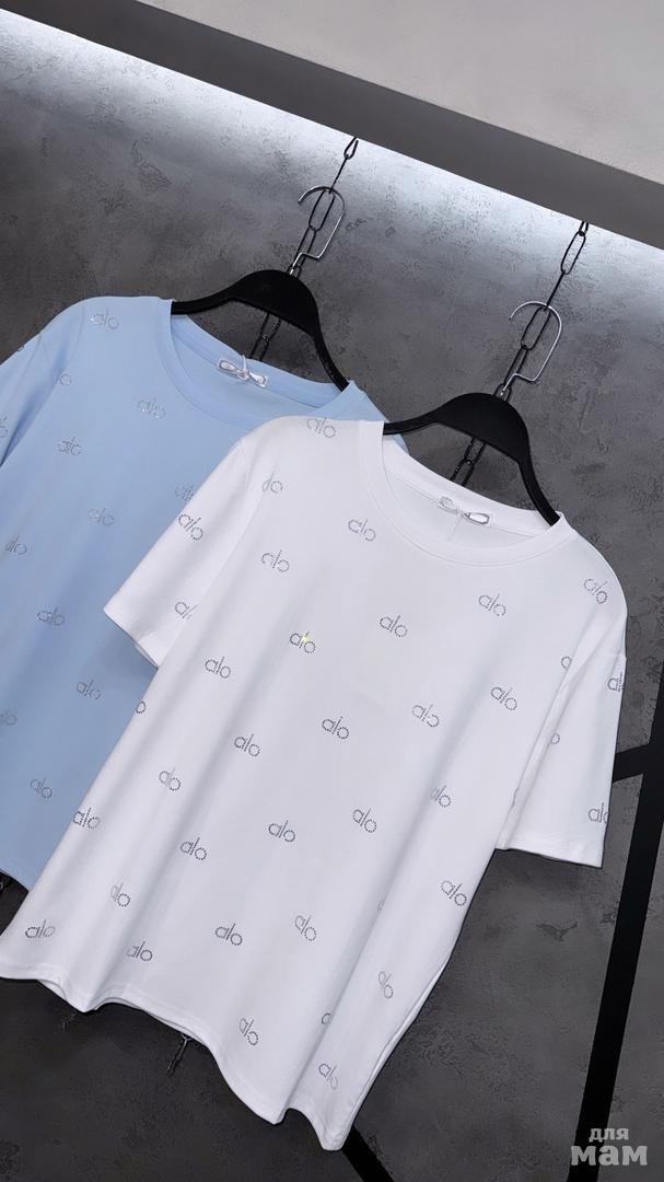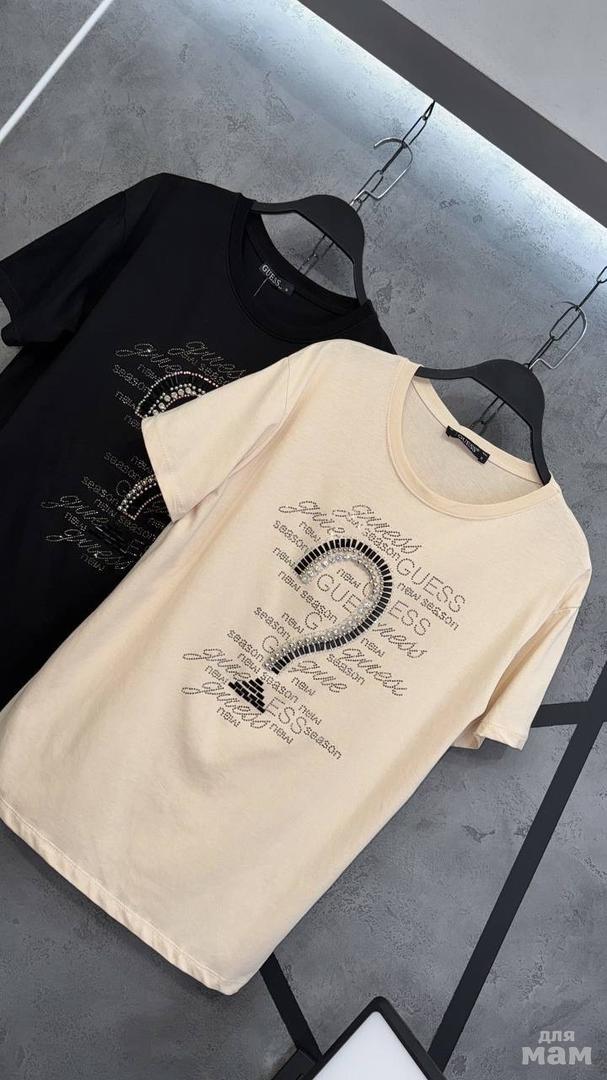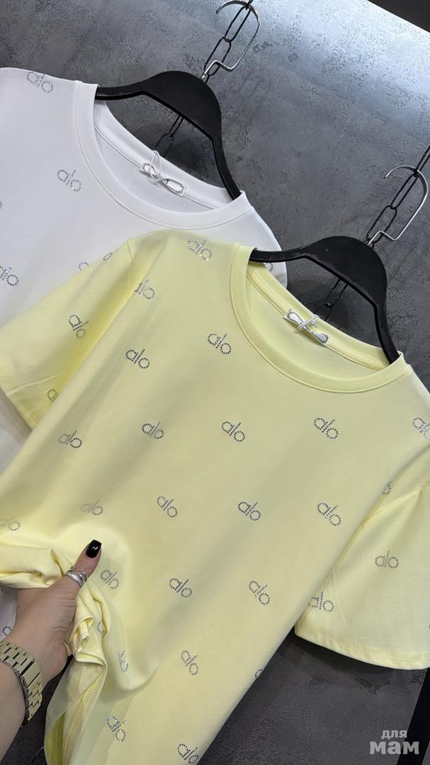 Стильная футболка с лого из камешек. Длина изделия 61 см. Отличное качество. ЦЕНА 800 РУБ
