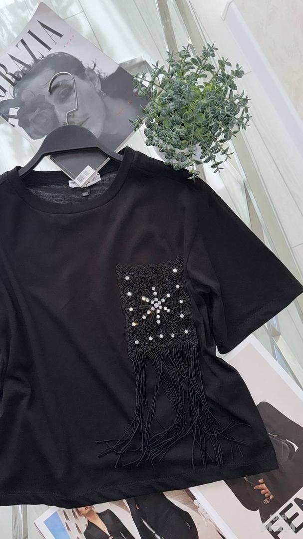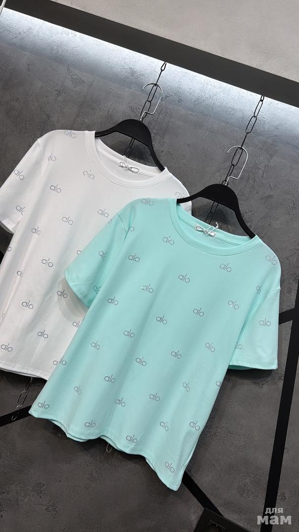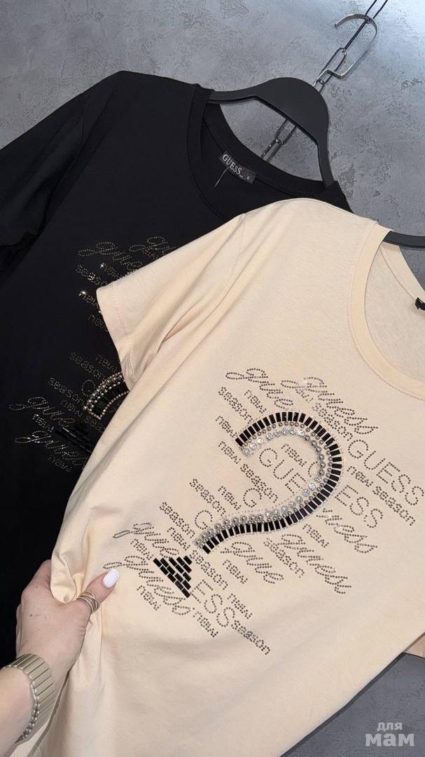 Классная футболка: пр-во Турция, с биркой известного бренда. Ткань хлопок. Детали логотип бренда из камешек. Длина по спинке 68 см . ЦЕНА 650 РУБ
