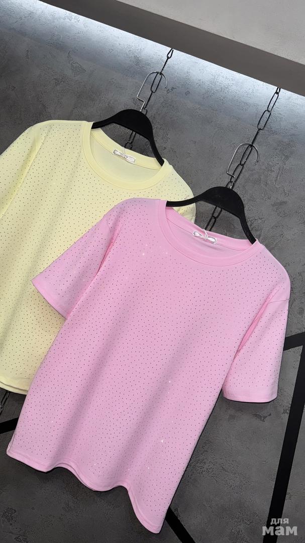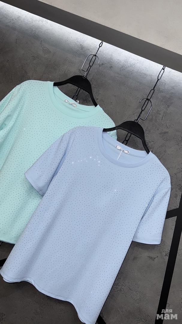Классные укороченные футболки с камешками. Классное качество. Фото живые. Длина по спинке 51 см . ЦЕНА 550 РУБ
