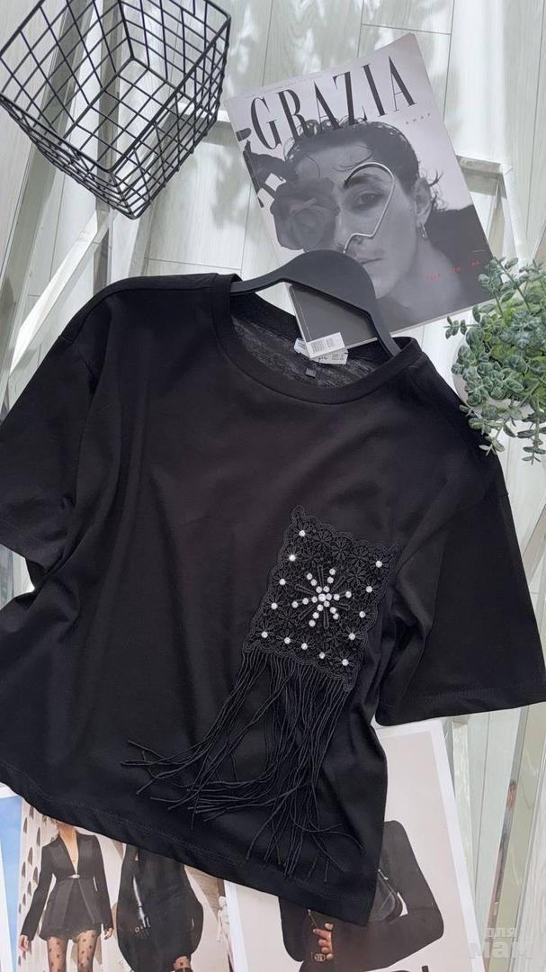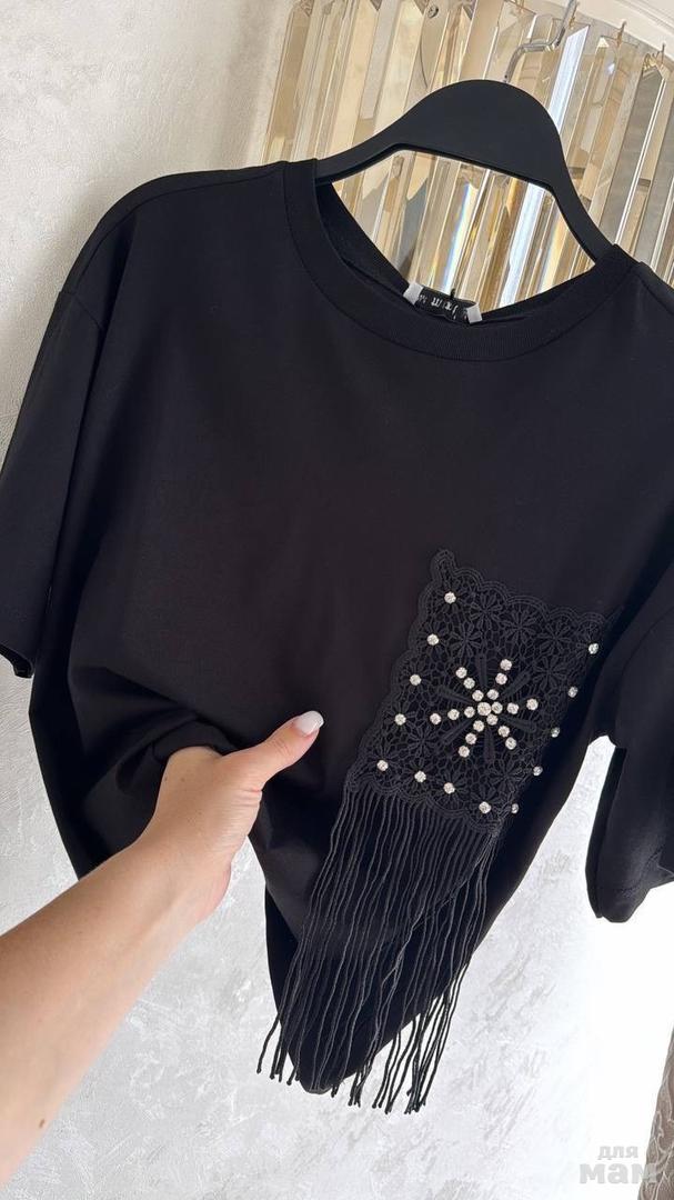 Стильная лаконичная футболка с камешками. Длина изделия 61 см. Отличное качество. ЦЕНА 800 РУБ