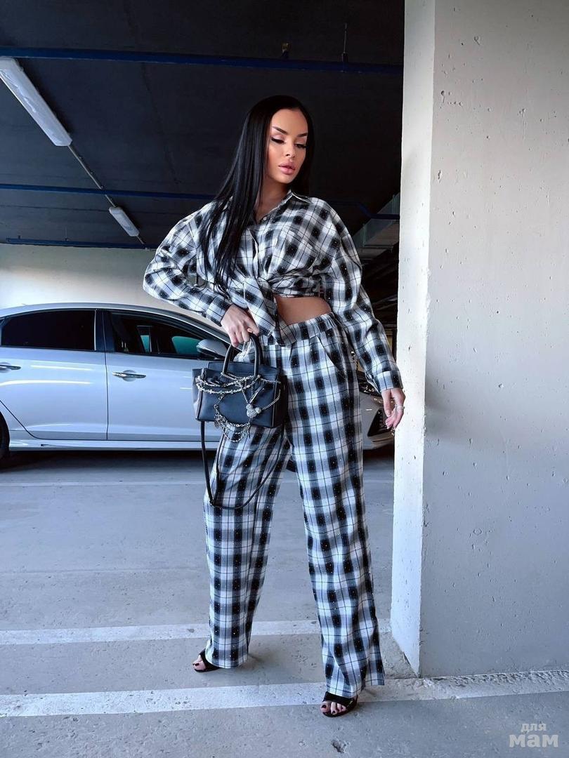 Крутые костюмы со штанами палаццо. Усыпаны тысячью камешек. Стиль Оверсайз. Фото живые, есть рабочие кармашки. Длина штанов 105 см . ЦЕНА 2000 РУБ