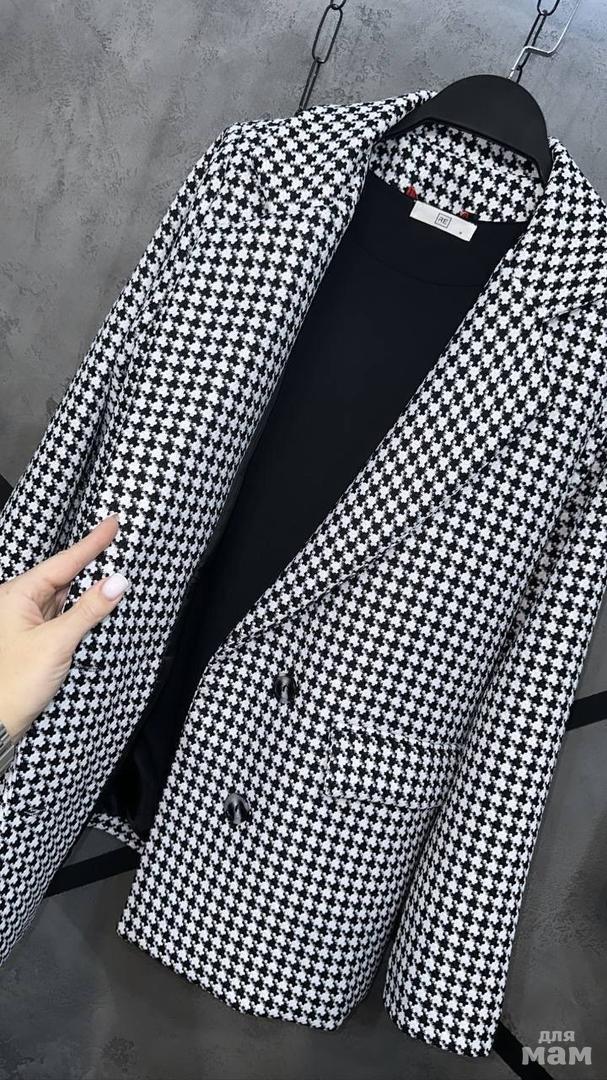 Принт «гусиная лапка» стал популярен в 1930-х благодаря Коко Шанель, по прошествию практически века он так и не утратил своей актуальности. Фото сделаны нами в живую, качество . Длина по спинке 70 см. На полном подкладе, рабочие кармашки . ЦЕНА 1600 РУБ