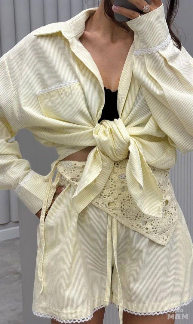 Костюм рубашка с шортами в полоску с ажурами