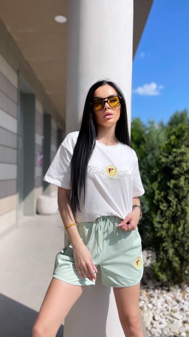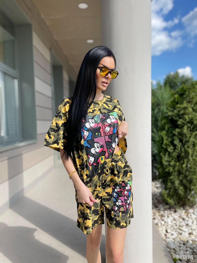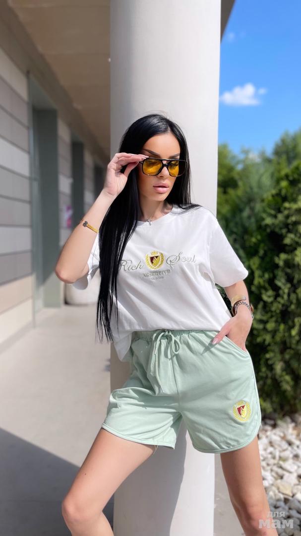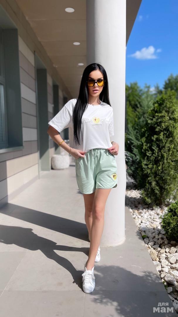 Легкие, удобные, стильные костюмчики с шортами на лето. Незаменимы для выездов на природу, дачу, отдых на море, да и просто активных выходных в городе. Детали: принт из пайеток. Фото реальные, есть рабочие кармашки. Длина футболки 60 см, длина шорт 44 см. ЦЕНА 1300 РУБ
